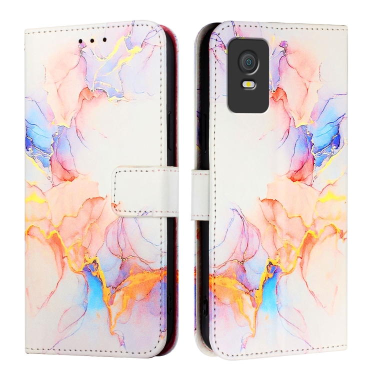 Funda de Cuero con Tapa para Tcl 403 Pt003 con Patrón Mármol (Blanco)