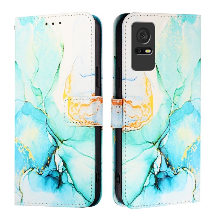 Funda de Cuero para TCL 405/406/408 Pt003 con Tapa y Patrón Mármol (Verde)