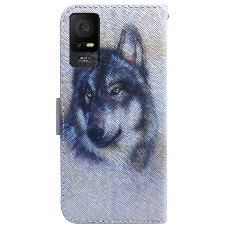 Funda de Cuero para TCL 408 con Dibujo Coloreado y Tapa (Lobo Blanco)