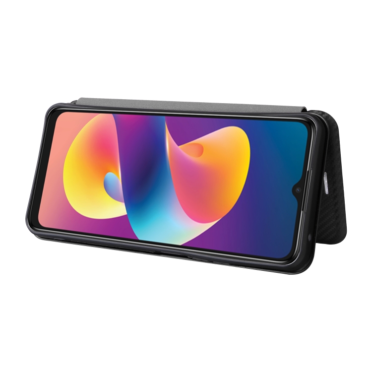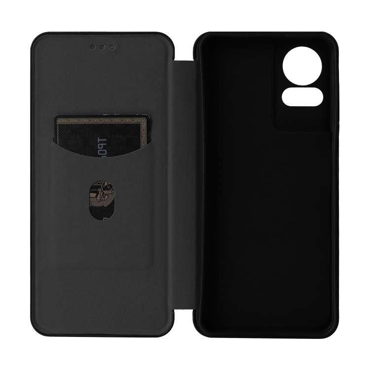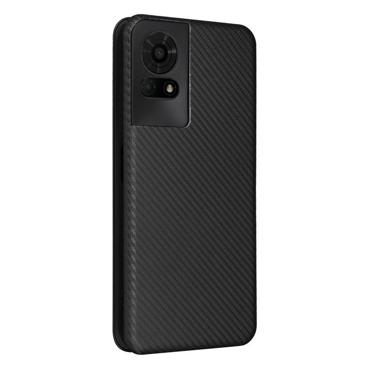 Funda de Cuero para TCL 50 Le 5G con Tapa y Textura de Fibra de Carbono (Negro)