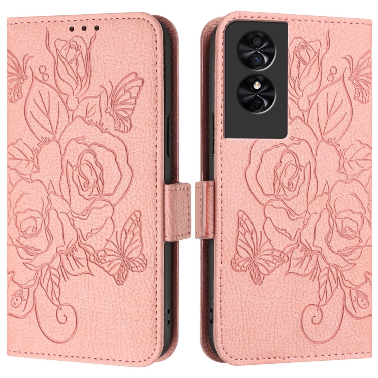 Estuche para TCL 50 Se de Cuero Antirrobo RFID con Rosa en Relieve (Rosa)