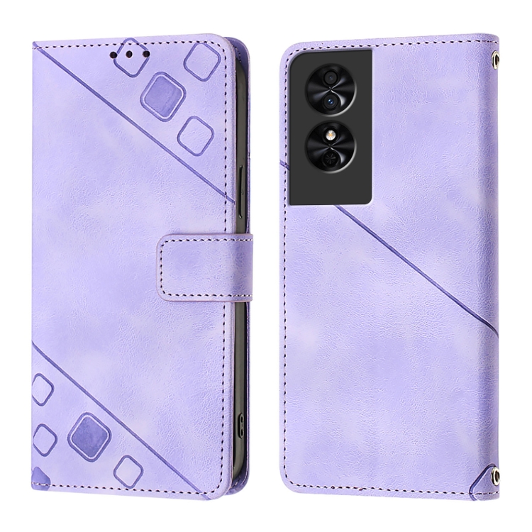 Funda de Cuero Skin Feel para TCL 50 Se en Relieve (Púrpura Claro)