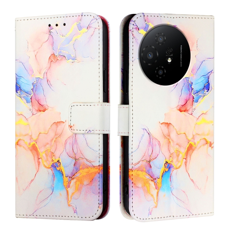 Funda de Cuero con Tapa para TCL 50 XL PT003 con Patrón Mármol (Blanco)