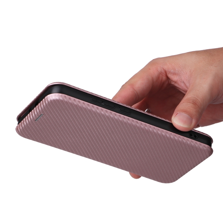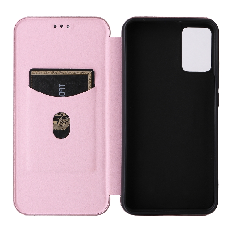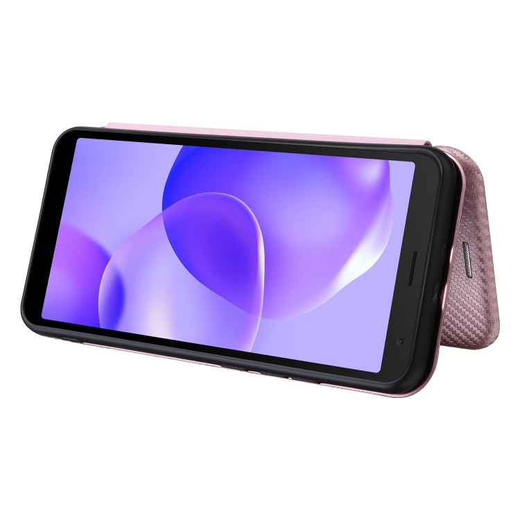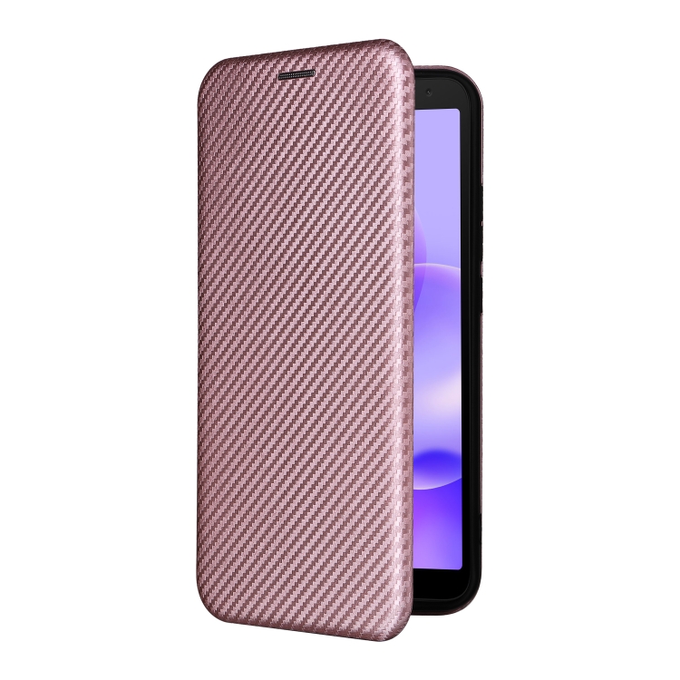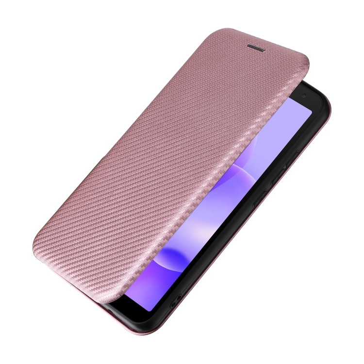 Funda de Teléfono para TCL 502 Cuero con Tapa Textura Fibra de Carbono (Rosa)
