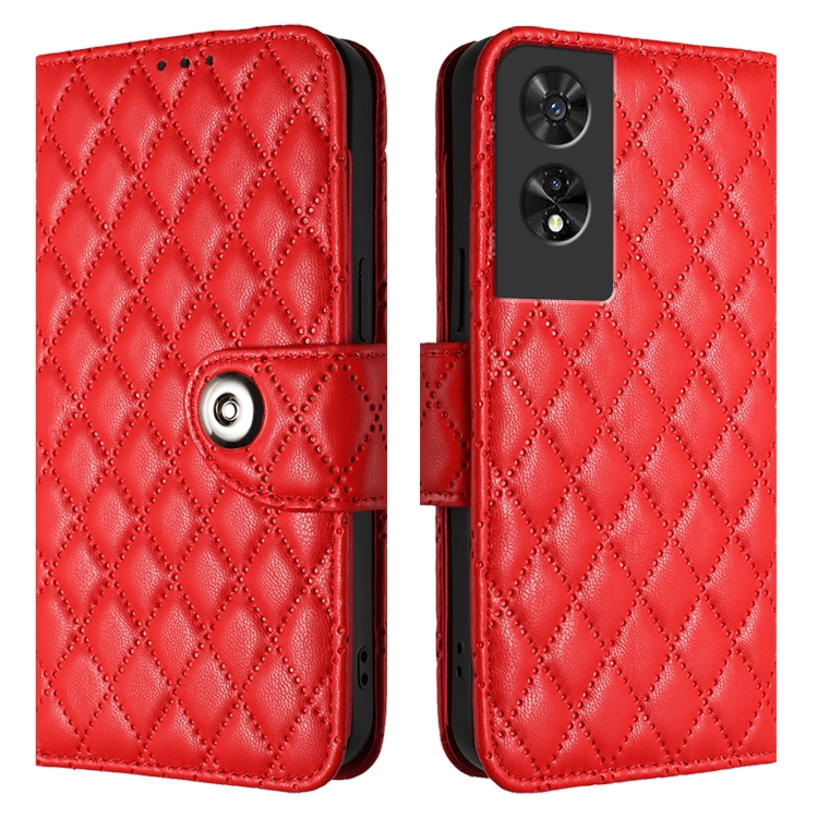 Funda para TCL 505 de Cuero con Tapa Textura Romboidal y Cordón (Rojo)