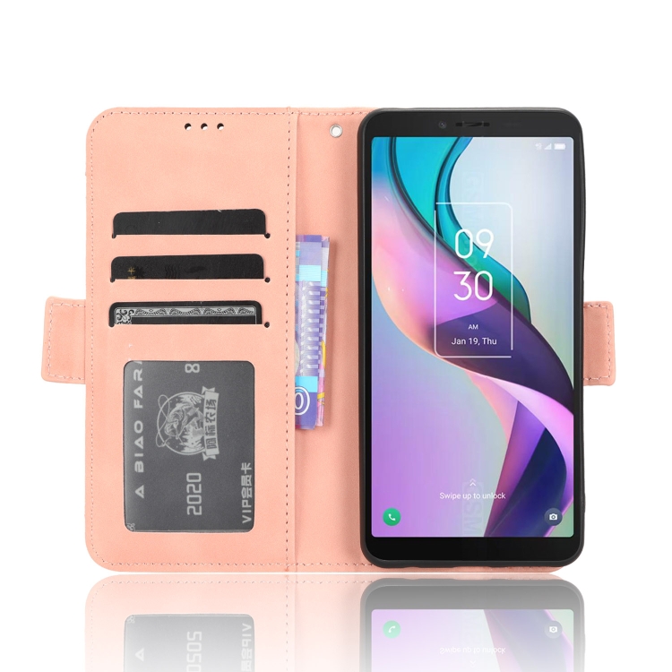 Funda de Cuero para TCL Ion X con Ranuras para Tarjetas y Textura Calf (Rosa)