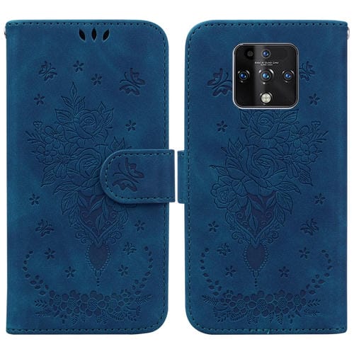 Funda para Tecno Camon 16 Gran Butterfly Rose Foothip en Cuero Relieve (Azul)