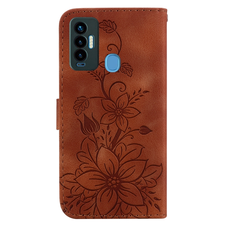 Funda de Cuero En Relieve para Tecno Camon 18I Lily (Marrón)