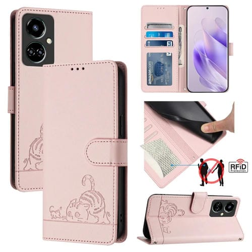 Funda para Tecno Camon 19 Cat Rat de Cuero con Protección RFID y Cordón (Rosa)