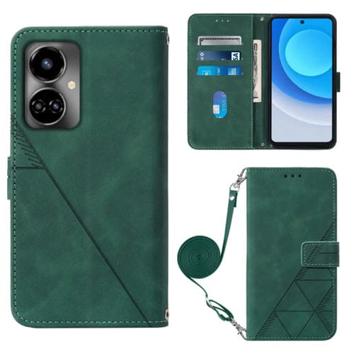 Funda de Cuero Flip 3D para Tecno Camon 19 Crossbody (Verde Oscuro)