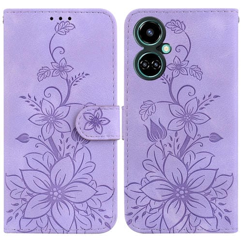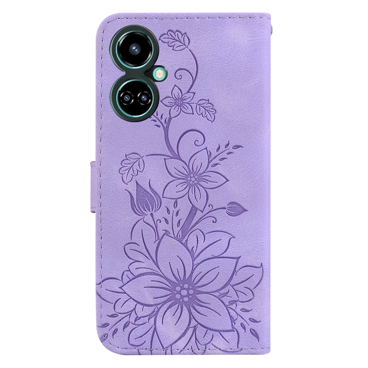 Funda de Cuero en Relieve para Tecno Camon 19 Lily para Teléfono (Púrpura)
