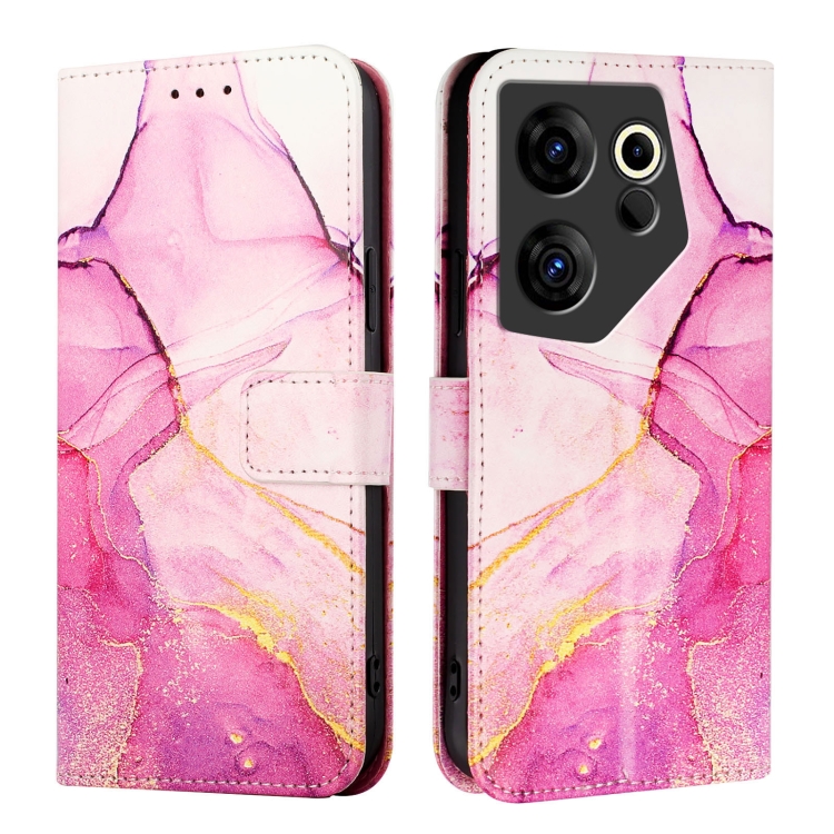 Funda para Tecno Camon 20 Premier 5G Ck9N Pt003 Cuero con Tapa y Patrón Mármol (Rosa, Morado y Dorado)