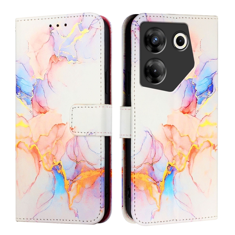 Funda de Cuero con Tapa para Tecno Camon 20 Pro 5G Pt003 con Patrón Mármol (Galaxy Marble White)