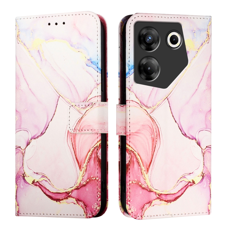 Funda para Tecno Camon 20 Pro 5G Pt003 de Cuero con Tapa y Patrón de Mármol (Oro Rosa)