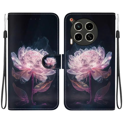Funda para Tecno Camon 30 4G/30 5G Cl6 Cl7 Cuero con Dibujo y Textura de Cristal (Peonía Púrpura)