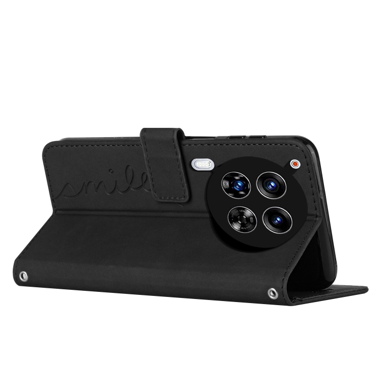 Funda para Tecno Camon 30 4G / 5G Skin Feel Heart Cuero En Relieve con Cordón Largo (Negro)