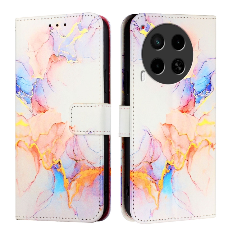 Funda de Cuero para Tecno Camon 30 5G / 4G Pt003 con Tapa y Patrón Mármol (Galaxy Marble White)
