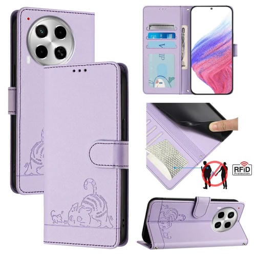 Funda para Tecno Camon 30 5G Cuero Rfid con Patrón en Relieve y Cordón (Púrpura)