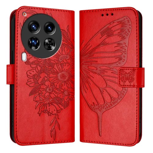 Funda de Cuero para Tecno Camon 30 Premier 5G con Mariposa en Relieve (Rojo)