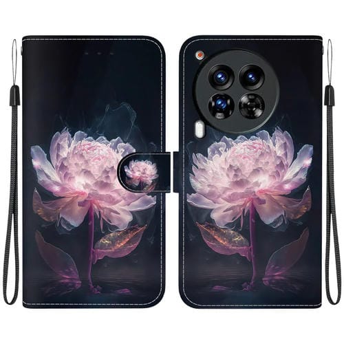 Funda de Cuero para Tecno Camon 30 Premier 5G con Dibujo Coloreado y Textura de Cristal (Peonía Púrpura)