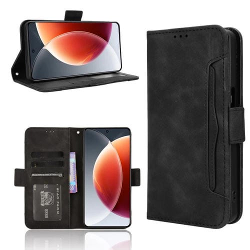 Funda de Cuero para Tecno Camon 30 Premier 5G con Ranuras para Tarjetas y Textura Skin Feel (Negro)