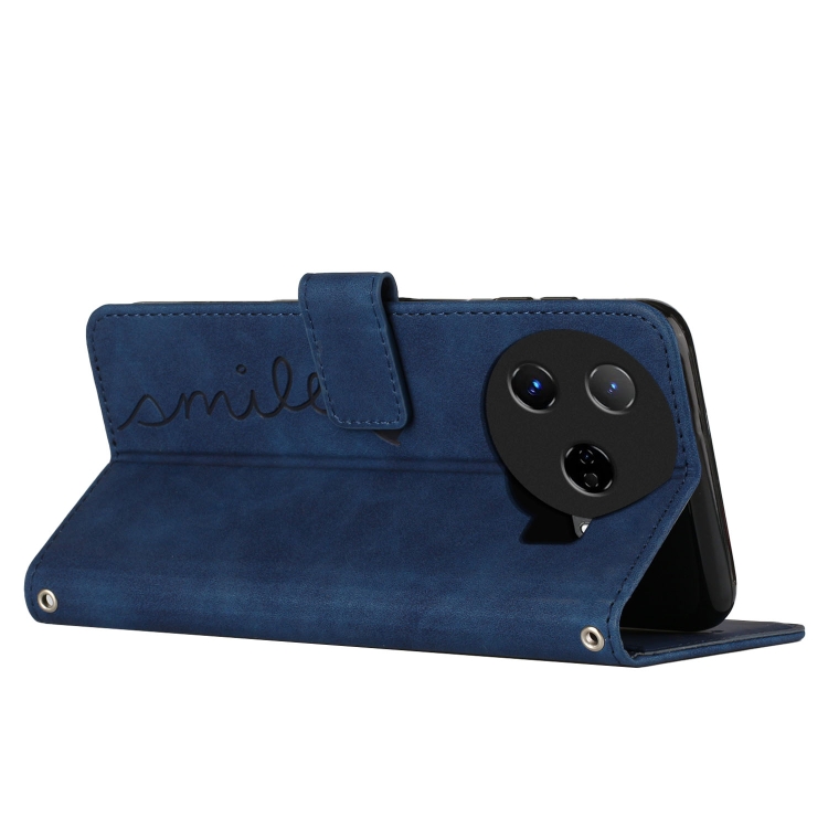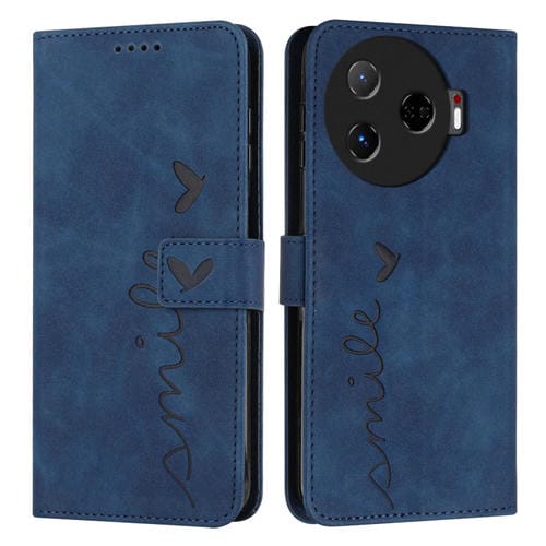 Funda para Tecno Camon 30 Pro 5G Skin Feel Heart de Cuero en Relieve con Cordón Largo (Azul)