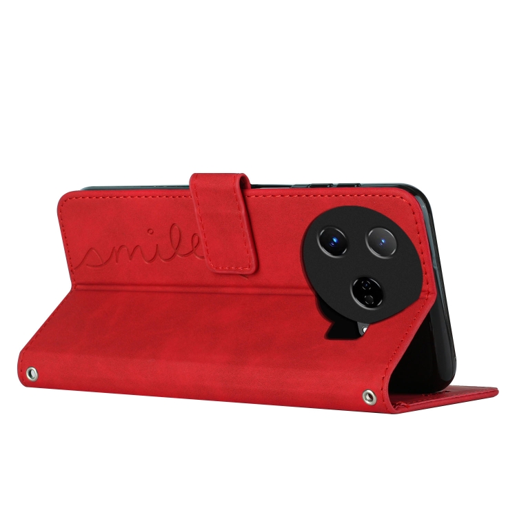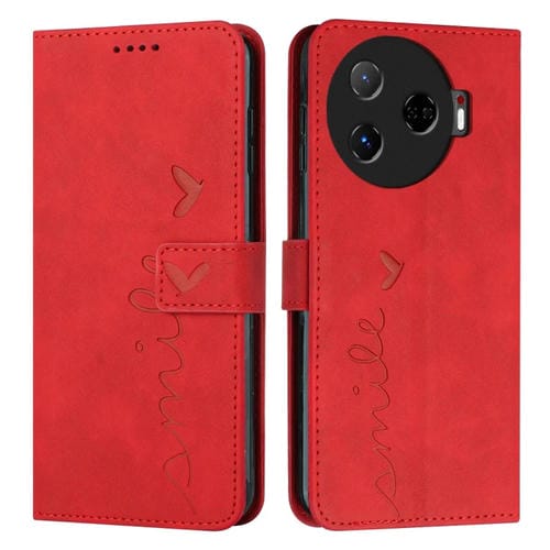 Funda para Tecno Camon 30 Pro 5G Skin Feel Heart de Cuero en Relieve con Cordón Largo (Rojo)