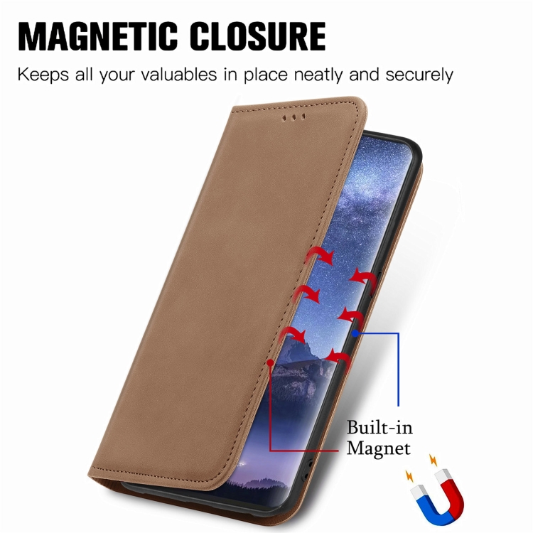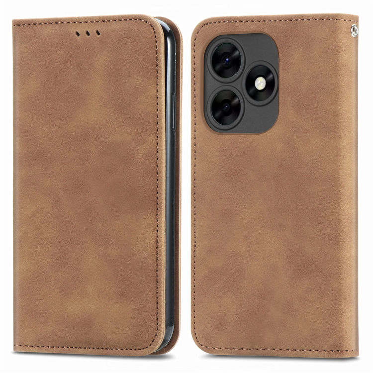 Funda para Tecno Itel S23 con Tapa Magnética y Sensación de Piel Retro (Marrón)