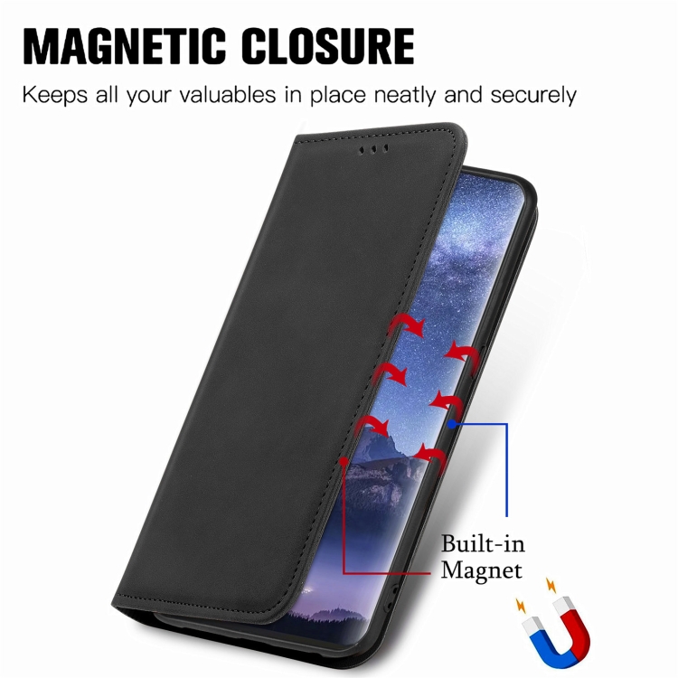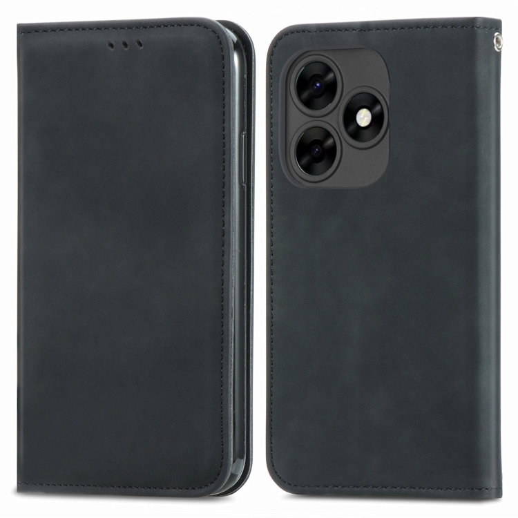 Funda de Cuero para Tecno Itel S23 con Tapa Magnética y Sensación de Piel Retro (Negro)