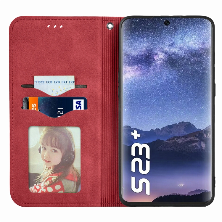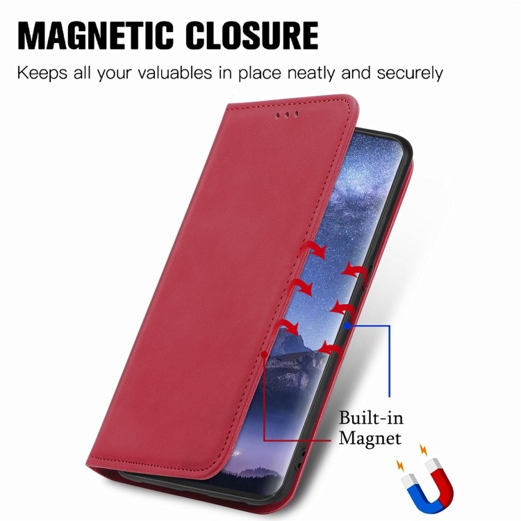 Funda para Tecno Itel S23 con Tapa Magnética y Sensación de Piel Retro (Rojo)