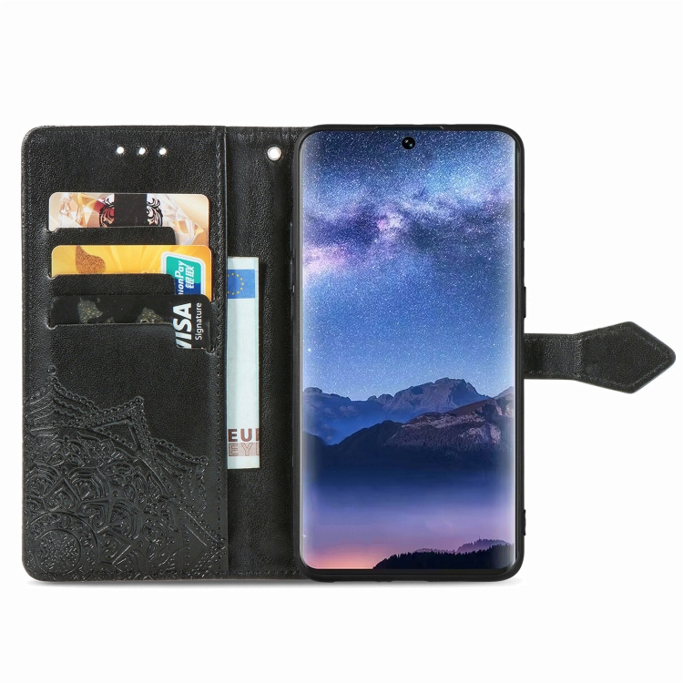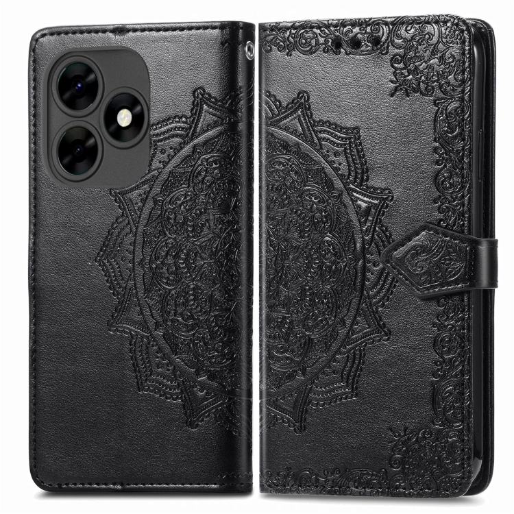 Funda para Teléfono Tecno Itel S23 de Cuero con Relieve de Flor de Mandala (Negro)