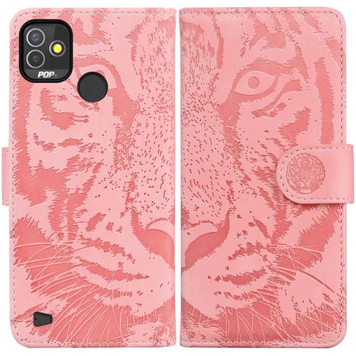 Funda Flip para Tecno Pop 5P Tiger con Estampado en Relieve Horizontal (Rosa)