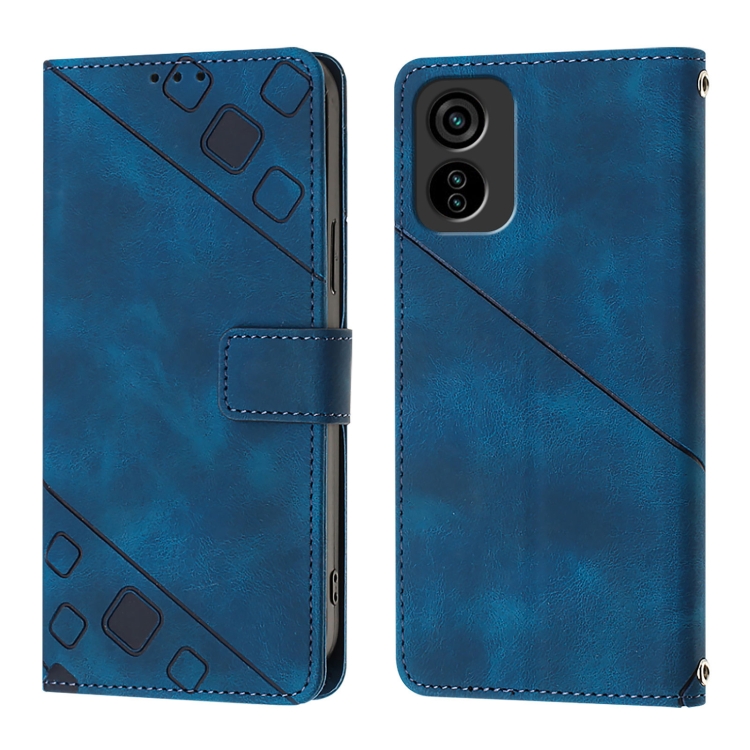 Funda de Cuero para Tecno Pop 6C Skin Feel en Relieve (Azul)