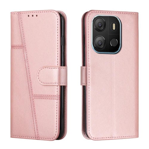 Funda de Cuero para Tecno Pop 7 con Hebilla y Textura de Becerro Cosida (Oro Rosa)