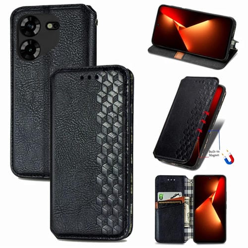 Funda de Cuero Magnético para Tecno Pova 5 4G Cubic Grid (Negro)