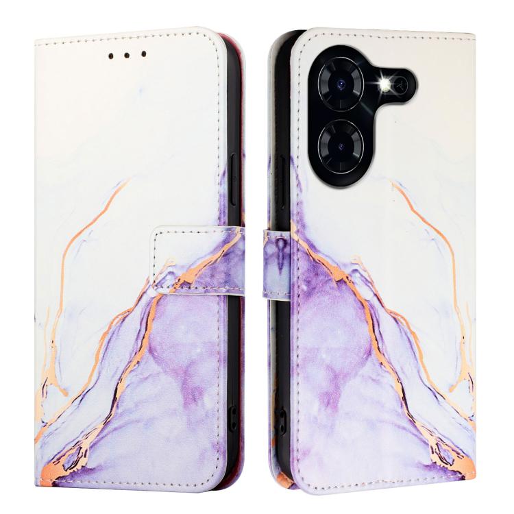 Funda de Cuero para Tecno Pova 5 4G Pt003 con Tapa y Patrón Mármol (Blanco y Morado)