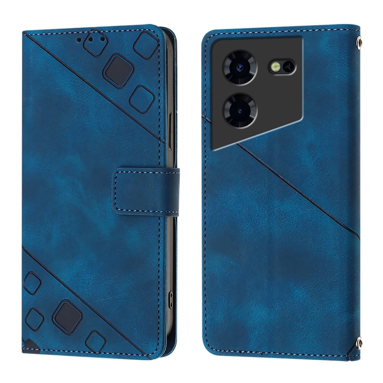 Funda de Cuero Skin Feel para Tecno Pova 5 4G en Relieve (Azul)