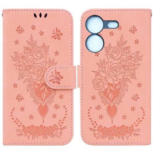 Funda de Cuero para Tecno Pova 5 Butterfly Rose con Relieve (Rosa)