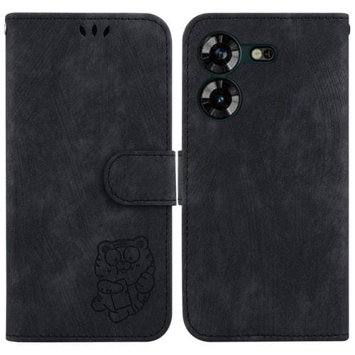 Funda de Cuero para Tecno Pova 5 Little Tiger en Relieve (Negro)