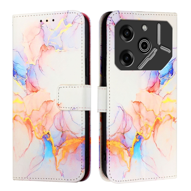 Funda de Cuero con Tapa para Tecno Pova 6 5G Pt003 con Patrón Mármol (Galaxy Marble White)