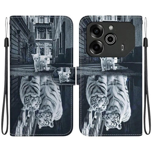 Funda de Cuero para Tecno Pova 6 Pro y Pova 6 con Dibujo Coloreado y Textura Cristal (Reflejo Tigre Gato)