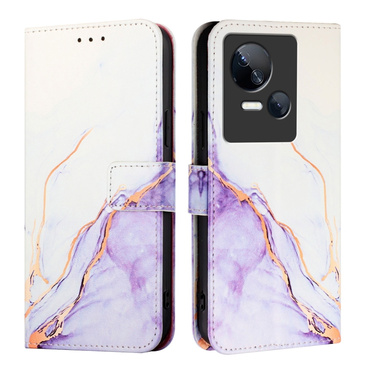 Funda de Cuero para Tecno Spark 10 5G Pt003 con Tapa y Patrón de Mármol (Blanco y Morado)