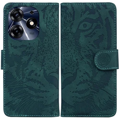 Funda de Cuero Flip para Tecno Spark 10 Pro con Patrón Tiger Embossing (Verde)