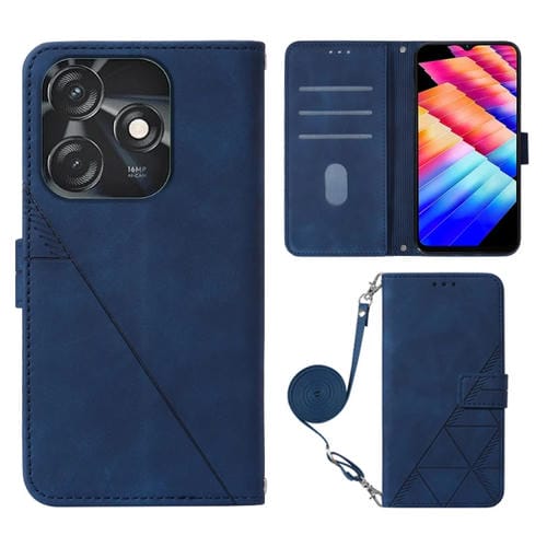 Funda de Cuero para Tecno Spark 10C / K15Q Crossbody 3D con Tapa En Relieve (Azul)