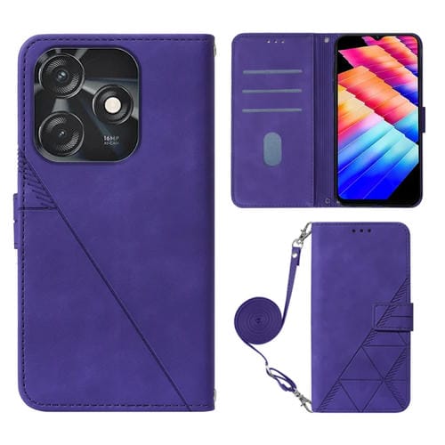 Funda de Cuero Crossbody 3D para Tecno Spark 10C / K15Q con Tapa En Relieve (Púrpura)