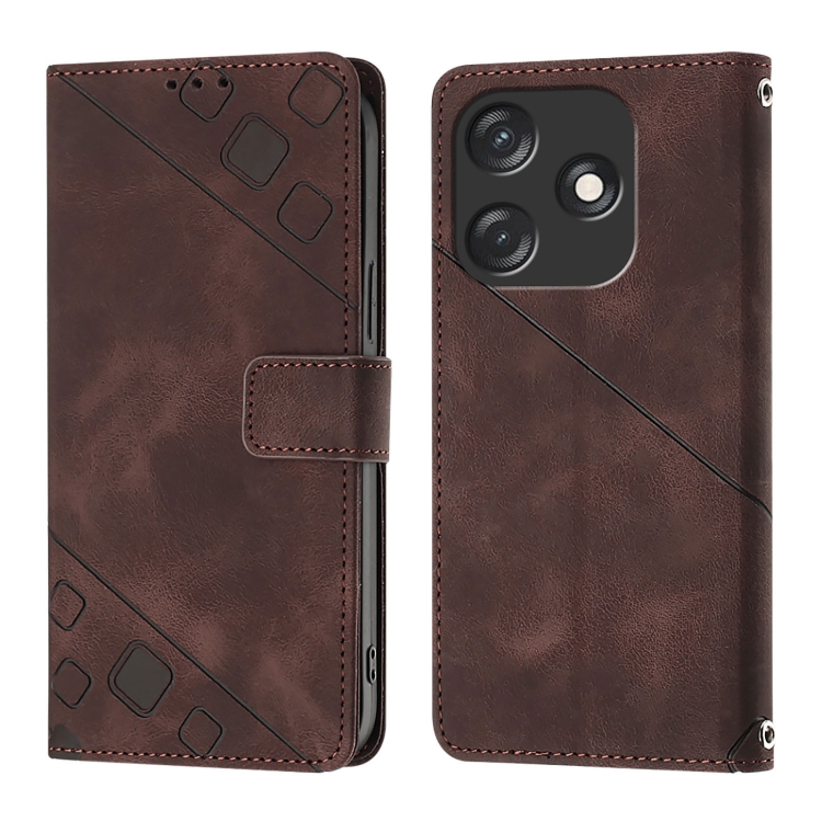 Funda de Cuero Skin Feel para Tecno Spark 10C en Relieve (Marrón)