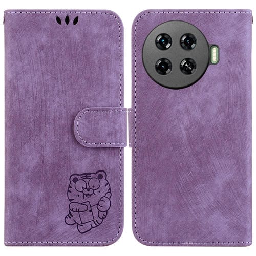 Funda de Cuero para Tecno Spark 20 Pro+ 4G Little Tiger en Relieve (Púrpura)