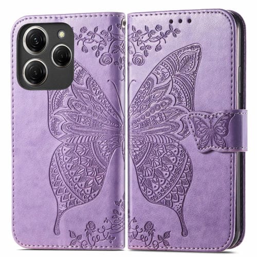 Funda de cuero en relieve para Tecno Spark 20 Pro Butterfly Love Flower (Púrpura Claro)
