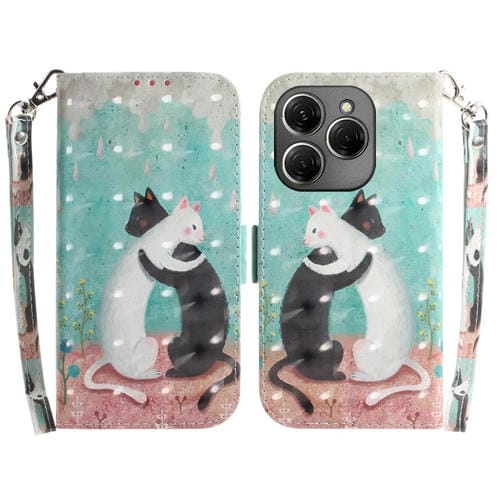 Funda de Cuero para Tecno Spark 20 Pro con Tapa Horizontal y Diseño 3D (Gato Blanco Negro)