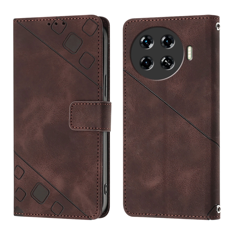 Funda de Cuero para Tecno Spark 20 Pro+ Skin Feel en Relieve (Marrón)